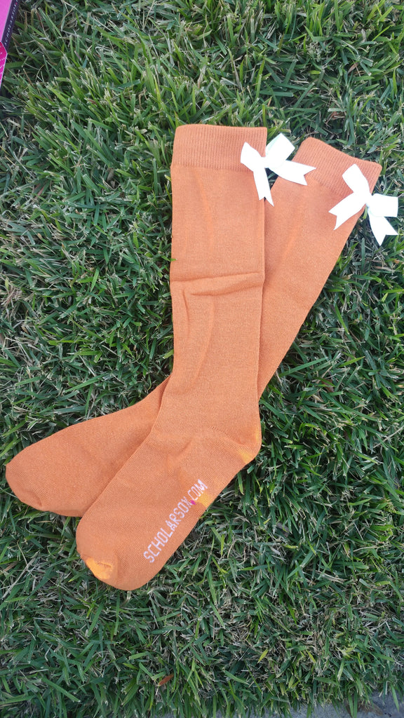 (LIMITED EDITION) Burnt Orange knee-high socks with white bows (2 pairs)
