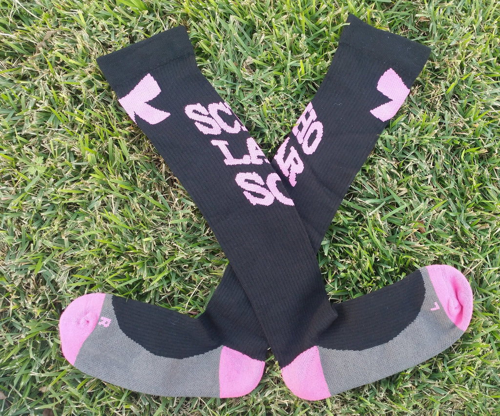 (1 pair of Compression/Athletic Black knee-high socks with Pink)
